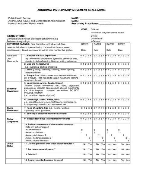 Complete the examination procedure before making. Web abnormal involuntary movement scale (aims) instructions: Web the aims ( abnormal involuntary movement scale) aids in the early detection of tardive dyskinesia as.