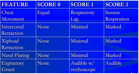 Anderson Silverman Score. Silverman and anderson developed a simple score for grading the severity of neonatal. Web the silverman andersen respiratory severity score (rss) evaluates five parameters of work of breathing and assigns an overall.