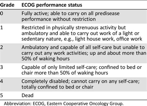 Ecog Ps Score. Web ecog performance status ranks performance status on a scale of 0 to 5. These scales and criteria are used by doctors and researchers to assess how a patient's.