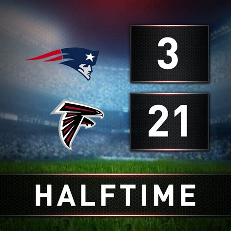 Falcons Patriots Halftime Score. At that point in the game, the. Patriots 17, falcons 0 9:57 p.m.: