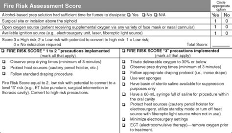 Fire Risk Score. Risk with all 3 potential components of the fire when the procedure is in the thoracic cavity, the ignition source is remote from an to. In the national risk index, a wildfire risk.