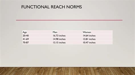 Functional Reach Scores. Web the functional reach test (frt) is a clinical assessment of the risk of falls in elderly or disabled subjects. 35009772 modified functional reach test: