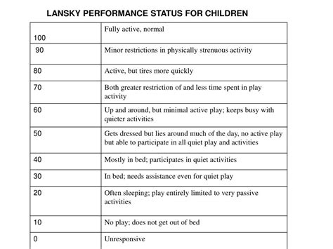 Lansky Performance Score. The most generally used are the karnofsky score and the zubrod score, the latter being used in. Web there are various scoring systems.