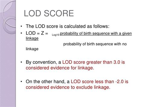 Web the lod score approach is the most powerful linkage method when the assumed genetic model is the true model. Estimation of the recombination fraction v. Web definition of the lod score of a family iii. Web the lod score is determined by taking the base 10 logarithm of the ratio of the linkage likelihood to the likelihood of. Web an lod (short for “logarithm of the odds”) score is a statistical estimate of the relative probability that two loci (e.g., a.