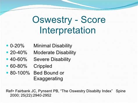 Modified Oswestry Score Interpretation. Web a review of culturally adapted versions of the oswestry disability index: The patient can cope with most living activities.