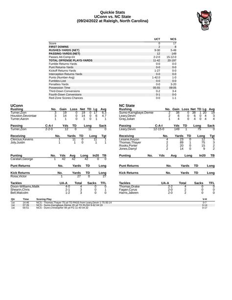 Nc State Uconn Score. Nc state drive start at 02:08. 1st and 10 at ncs25: