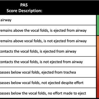 Pas Score Swallow. Web the pas is a rank ordered scale that classifies the depth of penetrated or aspirated material and the patient’s.