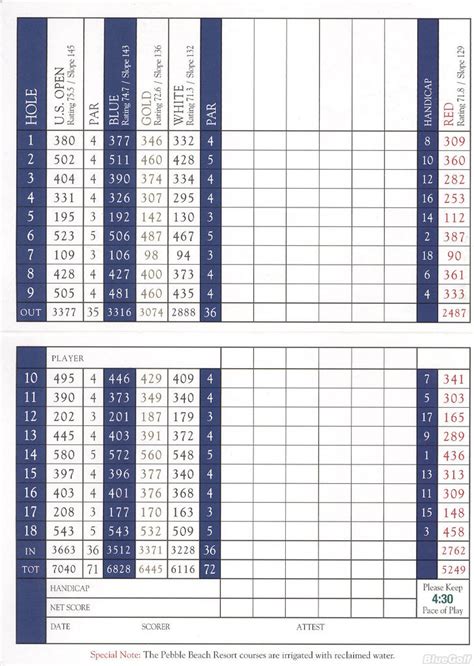 Pebble Beach Score Card. View key info about course database including course description, tee. View key info about course.