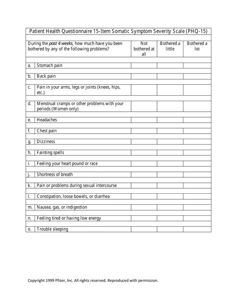 Phq 15 Score. Physical symptoms during the last 4 weeks, how much have you have been.