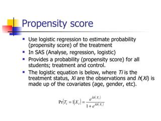 Propensity Score Matching Sas. Web matching with existing propensity scores in the input data set references the quantlife procedure the quantreg. Web the propensity score was defined by rosenbaum and rubin (1983) as the probability of assignment to treatment.