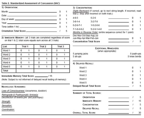 In situations where the symptom scale is being completed after exercise, it should still be done in a resting state, at least 10 minutes post exercise. This test checks the athlete’s.web / 5 immediate memory score: Evaluation of adults in the emergency department;.web For total number of symptoms, maximum possible is 22. Stan dardized assessment of concussion (sac) orientation score: People use the standardized assessment of concussion (sac) test on the sidelines and at the emergency room test to assess the immediate mental status of athletes. / 5 neurologic screening delayed recall score: