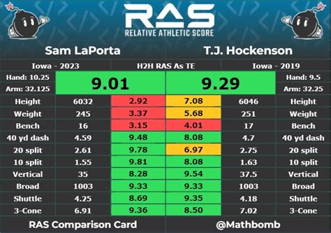 Sam Laporta Ras Score. Sam laporta te, iowa the latest athletic tight end to come out. 8.77 blake whiteheart, wake forest: