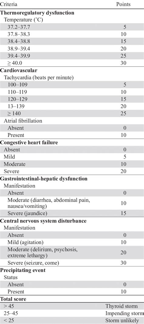 Diagnostic criteria for thyroid storm Download Table