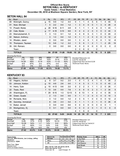 Box score from Kentucky’s overtime loss to Seton Hall