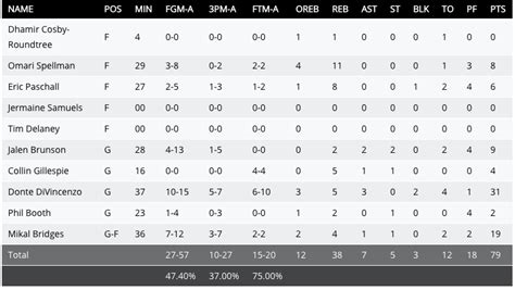 Villanova Box Score. The official box score of men's basketball vs ucla on 12/9/2023. Visit espn for villanova wildcats live scores, video highlights, and latest news.